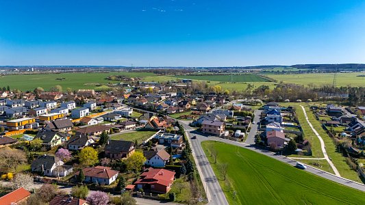 Pozemek se nachází na začátku ulice, je mírně svažitý a nabízí směrem na západ příjemný výhled do okolí.